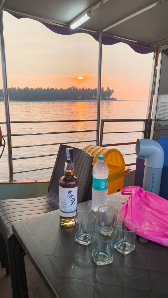 But the real highlight of the evening was our houseboat experience…a four-hour river journey that felt like therapy. Just four of us, soft music, good food, and a sunset over mangroves and shipyards. Peace in motion.